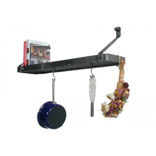 Enclume Bookshelf Cookware Rack with Grid - Chrome Plated. These popular racks keep cookware, cookbooks, and other necssities at your fingertips! 36L x 9D x 13.5H. Mounts on 32 Centers. Includes shelf grid Hooks: 6 Straight and 6 Angled.
